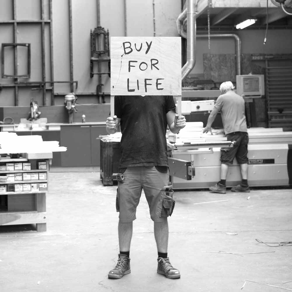 Eigentijdse meubels en keukens, vervaardigd van traditionele en circulaire materialen met technieken die hun duurzaamheid hebben bewezen in traditioneel vakmanschap.